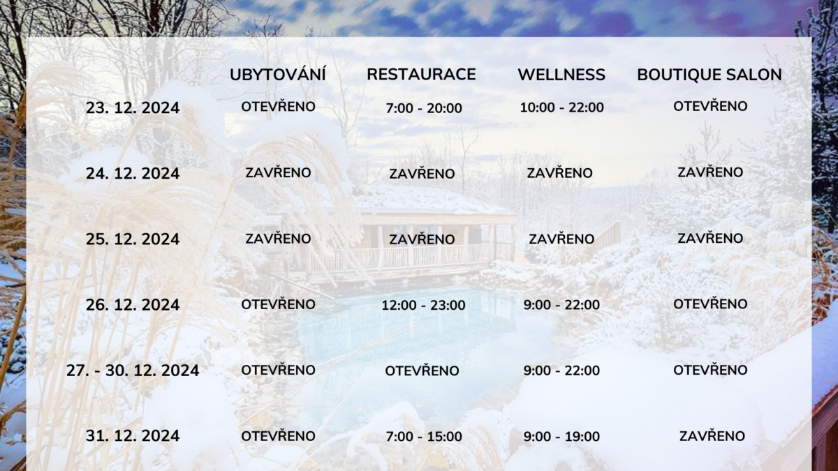 10. 12. 2024 Vánoční otevírací doba Jsme tu pro Vás i mezi vánočními svátky, pouze s upravenou otevírací dobou 🌲 Těš... Zobrazit více